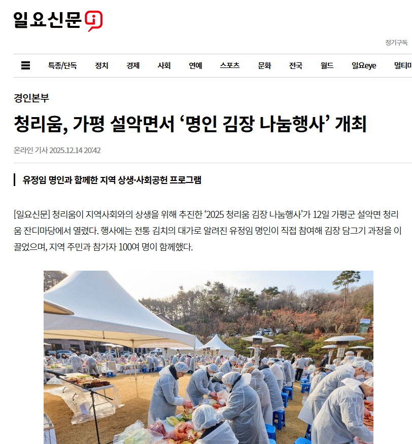 '일요신문'에 유정임 명인과 함께한 지역 상생·사회공헌 프로그램으로 소개되었습니다.