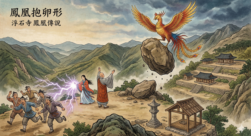 676년 의상대사가 창건한 경북 영주의 부석사는 봉황이 알을 품은 듯한 봉황포란형(鳳凰抱卵形)의 명당터다. 전설은 다음과 같다. 의상대사가 왕명으로 절을 세울 때 산적들의 행패가 심했다. 이때 의상대사를 사랑한 중국 여인 ‘선묘낭자’가 나타나더니 번개를 일으키며 산적들에 대항했다. 이에 산꼭대기에서 봉황이 날아와 큰 바위를 세 차례나 공중에 들었다 놓으면서 산적을 물리치는데 힘을 보탰다. 산적들은 낭자와 봉황의 도움을 받는 의상대사의 도력에 감복해서 절을 짓는 데 일조했다. 의상대사는 절이 완성되자 이를 기념하기 위해 절 이름을 돌이 공중에 떴다고 해서 ‘부석(浮石)’이라 지었고, 부석사가 위치한 산 이름도 봉황이 나타났다고 해서 봉황산이라고 불렀다.
