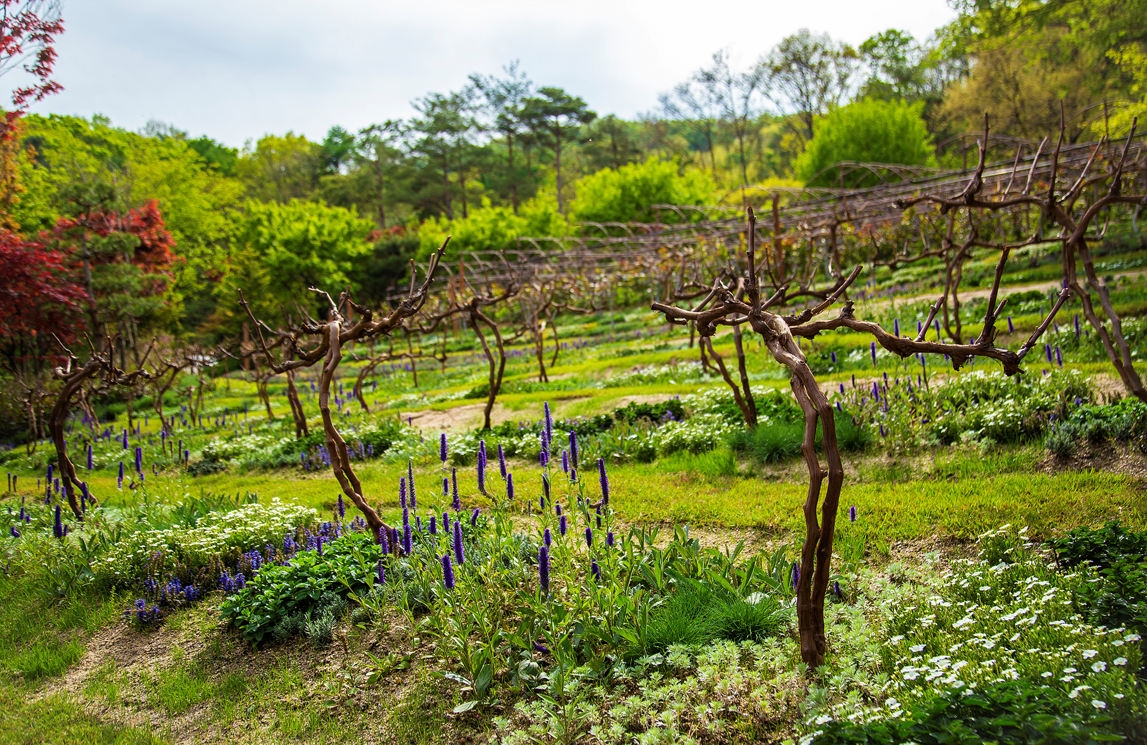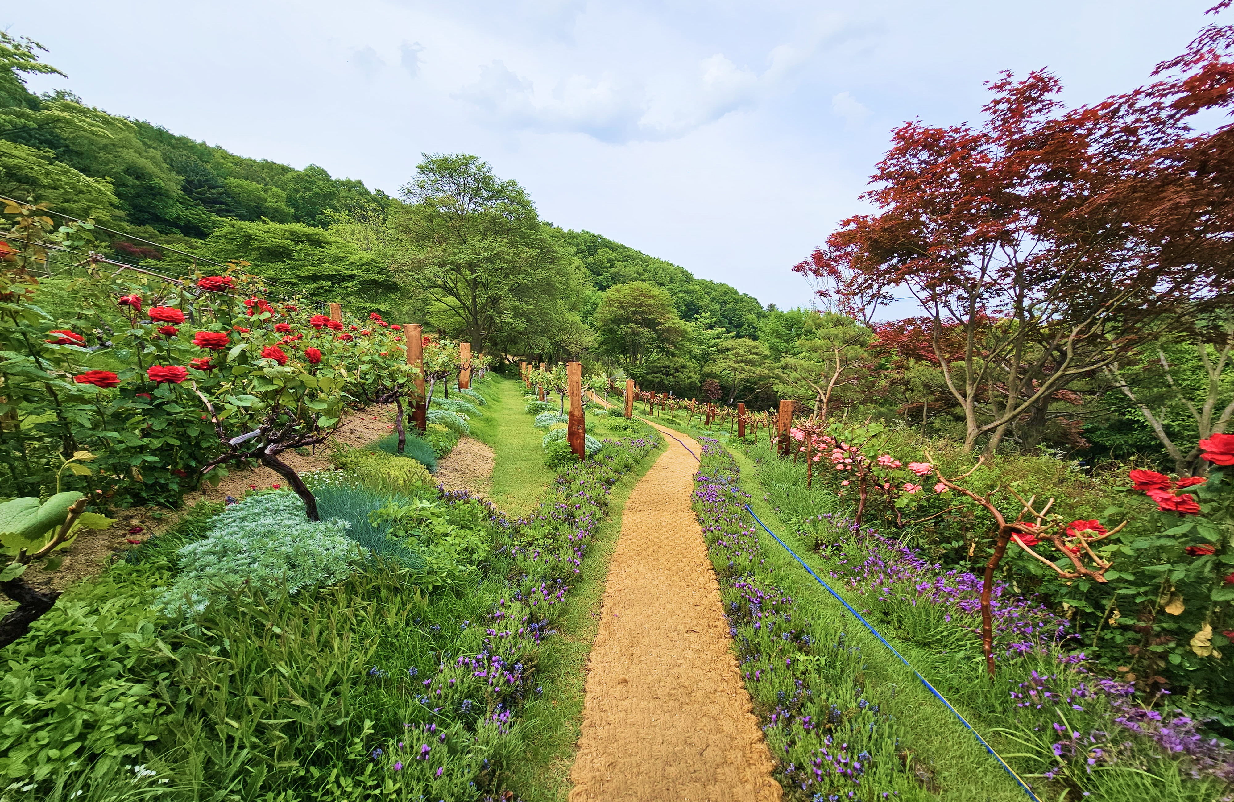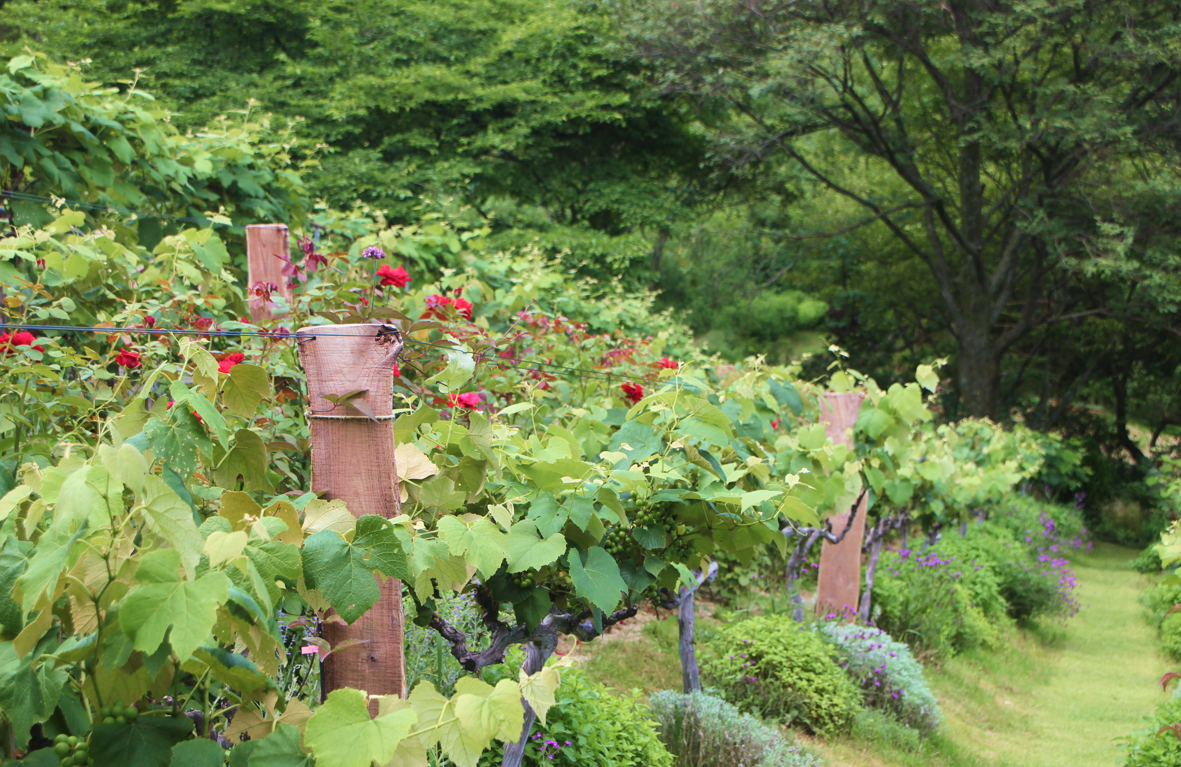 포도나무 길을 따라 심어진 장미와 다채로운 허브의 향